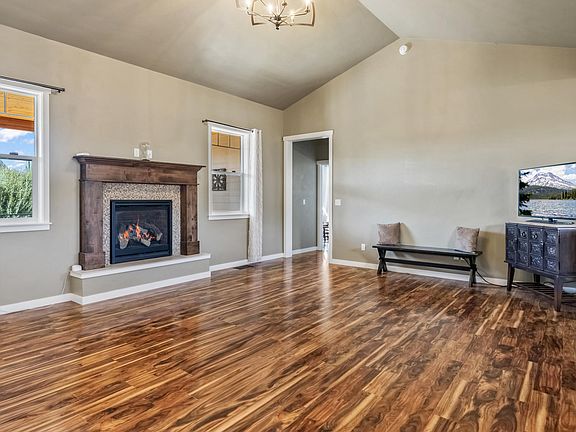 Welcome to this stunning single-level home where thoughtful design meets modern efficiency. No carpet, just gorgeous acacia floors throughout. The chef's kitchen features double islands, two sinks, double ovens, a gas cooktop, stainless appliances, and a walk-in pantry. The spacious primary suite offers mountain views, a walk-in closet, tiled shower, and air-jet soaking tub. Guests enjoy a mini-ensuite, while an additional bedroom, guest room with barn-door closet, and office with built-ins provide flexible space. Owned solar keeps the electric bill under $20/mo. Oversized 2-car garage with full attic storage, plus RV parking with hook-up. Outdoor living shines with xeriscaped front and back landscaping, a circular paver patio for a firepit or whatever else you would like to do in that area. Covered front & back patios with beautiful views. Natural gas BBQ, large laundry/mudroom with hidden storage, and so much more. Truly a must-see!