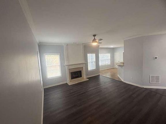 Welcome to 4571 Garden City Drive - a beautifully refreshed home offering modern comfort and stylish living in the heart of Lithonia, Georgia. Upon arrival, you'll be captivated by the home's freshly painted exterior, accented with stone detailing and striking black trim for a timeless, contemporary look. Inside, the open-concept floor plan welcomes you with soaring ceilings, rich dark-wood flooring, and abundant natural light that enhances every room. Step into modern comfort and elegant design at this beautifully refreshed two-story home located in a quiet, well-established community in Lithonia. This 3-bedroom, 2.5-bath residence blends charm and functionality with thoughtful updates and spacious living areas designed to impress. This spacious two-story residence showcases an inviting open layout with soaring ceilings, sleek dark-wood flooring, and an abundance of natural light throughout. The neutral designer paint palette and updated finishes create a warm, contemporary atmosphere perfect for both relaxing and entertaining. The main level features a bright family room with a loft overlook, a dining area, and a well-appointed kitchen ready for your personal touch. The home offers multiple versatile spaces - ideal for a home office, media area, or guest suite. The inviting family room features a cozy fireplace and large windows that create a bright, airy atmosphere. The updated kitchen offers white cabinetry, tile backsplash, and stainless-steel appliances - ideal for meal prep and entertaining. A separate dining area provides the perfect setting for gatherings and family dinners. Upstairs, you'll find generously sized bedrooms with ample closet space and freshly painted interiors. Upstairs, the spacious primary suite offers a private retreat with vaulted ceilings, a large walk-in closet, and a beautifully appointed en-suite bath featuring dual vanities, a soaking tub, and separate shower. Additional bedrooms are well-sized with ample storage, fresh paint, and plenty of light. Nestled in a quiet, well-kept neighborhood, this home provides easy access to major highways, shopping, schools, and parks - blending suburban comfort with accessibility to all that metro Atlanta has to offer.