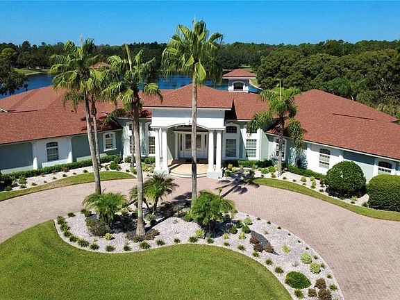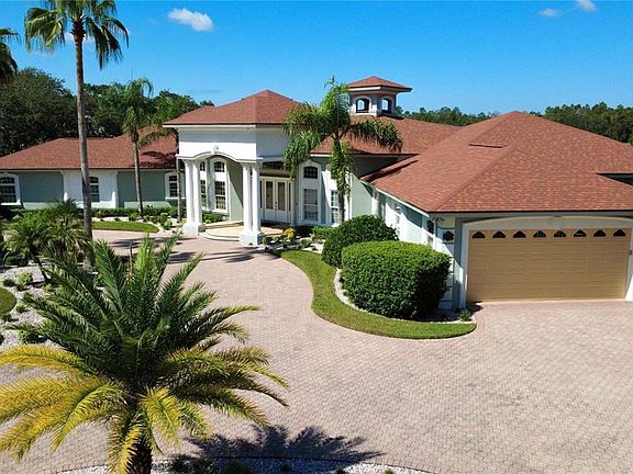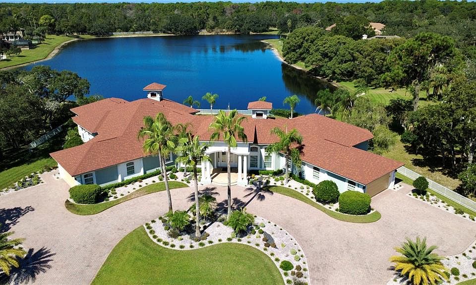 Welcome to this stunning lakefront estate on nearly an acre of professionally landscaped grounds. The estate sits on a spring-fed lake that backs up to a state nature preserve and is just three miles from the ocean. This custom-built masterpiece invokes the sophistication of an updated smart-home. It comes FULLY FURNISHED and has a BRAND-NEW ROOF (2025). You are welcomed through the double glass front doors by a stunning infinity lake view and fourteen-foot coffered ceilings which continue throughout the palatial interior. Marble flooring, marble walls, and quartz counters are just a few of the meticulous details. This home is the epidemy of a smart-home with a top-of-the-line Control4 home automation system. With a touch of your finger from your cell phone you can control the lights, motorized shades, whole house surround sound, TV’s, front door intercom/camera, AC thermostats, smart door locks, and exterior security cameras from anywhere in the world with an internet connection. This immaculate SINGLE-STORY retreat includes 5 bedrooms, each with their very own en-suite bathroom and walk-in closet. There is a great room, family room, sitting room/library, formal dining room, a home office with custom cabinets, a meditation room, and your very own exercise room. The master bedroom is for the most discerning of owners. It has a stunning view of the spring-fed lake, double trey ceilings, a mini bar with refrigerator, hardwood floors, a chandelier, as well as his and hers walk-in closets. The master bath has marble floors, soft close drawers, a freestanding soaker tub and a walk-in frameless glass shower with rain head plus multiple heads. Other distinctive features in the home include; Motorized shades. Cove lighting with various colors to suit your mood. Faux painted walls. Imported chandeliers. Four ecobee smart thermostats making it four-zone energy efficient. In the kitchen there is a sensor touch main sink, a second prep sink, a Sub-Zero refrigerator and an Insta-hot faucet. There are two gas fireplaces, both remote controlled. There is also a Tesla charging station in the garage. There are actually TWO two-car garages big enough for four cars, plus extra space for a golf cart or other toys. Outside offers privacy and luxury with a RECENTLY REMOLDED AND RESURFACED POOL (2024) that overlooks amazing sunsets on the lake. There is lanai with outside sink, outside surround sound, extensive landscape lighting, mature fruit trees, and over 1500 square feet of raised patio space. Located in the exclusive 24/7 guard staffed gated community of Lake in the Woods, which has tennis courts, pickle ball court, playground, and two lakes where canoes are allowed. Wild life abounds in this serene community; Turkey flocks, deer, ducks, egrets, sand hill cranes, ospreys, golden eagles, humming birds, and hawks. The community is conveniently located just 7 minutes to Weeki Wachee Springs State Park for kayaking and paddle boarding. 10 minutes to Hernando Beach for boating and deep sea fishing. 15 minutes to Pine Island Beach for swimming and sunsets. 45 minutes to the Tampa International Airport, and less than 60 minutes to St. Pete Beach, which was named the number one beach in America.