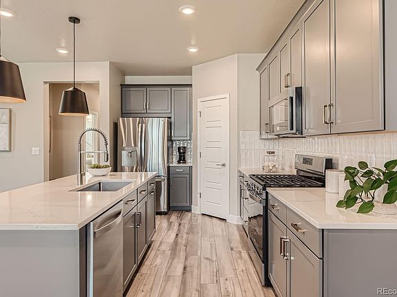 Welcome to this stunning newly constructed 3-bedroom, 3-bath home, nestled in a quiet maintenance-free community. This home displays elegance with over $45,000 in builder upgrades, ensuring luxurious living at its finest. As you step inside, you’ll be greeted by soaring 9-foot ceilings that amplify the sense of space. The open-concept main level, adorned with large windows, creates a bright, airy and inviting atmosphere filled with natural light. Thoughtfully chosen finishes in the kitchen create a clean and timeless ambiance featuring warm gray cabinetry, elegant white quartz countertops, smart stainless steel appliances, an expansive center island and ample storage - ideal for both cooking and entertaining. The dining area seamlessly connects to the private backyard through sliding glass doors, allowing you to enjoy outdoor living year-round. The top floor offers a versatile space that can serve as an office, playroom or entertainment area. Retreat to the spacious primary suite featuring a walk-in closet and a luxurious en-suite bathroom with double vanities. Two additional bedrooms offer plenty of space for family or guests, each with easy access to a shared bathroom. The laundry room is conveniently located on this level. The two-car garage with south facing driveway, makes winter shoveling a breeze. The unfinished basement presents endless possibilities - whether you envision a media room, home gym, second office, or playroom, the choice is yours. Discover the epitome of modern living in this energy efficient home, where every detail has been meticulously crafted to offer comfort and convenience. Ideally located for easy access to the mountains and within walking distance of multiple parks, the Southwest Recreation Center, Harriman Lake, and a variety of shopping and dining options at Quincy & Wadsworth and Kipling & Belleview! Don't miss the opportunity to make this exceptional home your own - come and see it today!