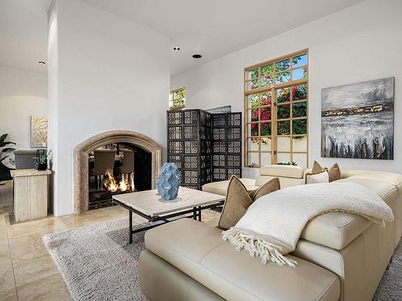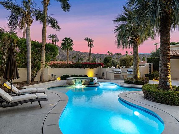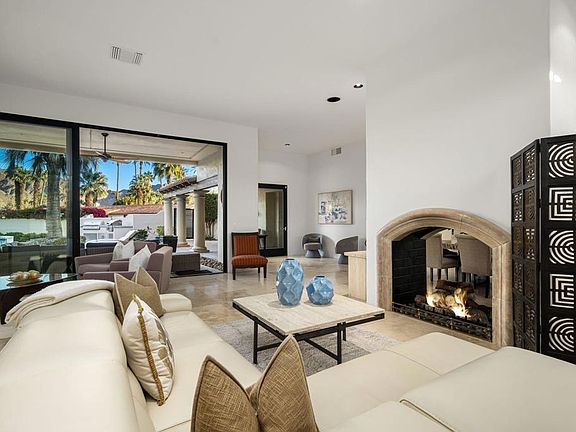 Presenting an exceptional opportunity to own a Spanish/Mediterranean estate in the heart of Indian Wells. This one-of-a-kind residence has been flawlessly designed with premium modern finishes, offering a rare blend of luxury and comfort in a remarkable setting. As you enter through a private courtyard gate, you're immediately welcomed into a tranquil, resort-inspired ambiance. Inside, you'll discover impeccable craftsmanship throughout, from custom Travertine flooring to high ceilings and extensive recessed lighting that showcase a formal living and dining area that is complete with a double-sided fireplace, expansive windows and stacked rolling slider doors that allow natural light to flood the home, while framing breathtaking views of the surrounding mountains. The gourmet kitchen is a chef's dream, including top-tier appliances, Sub-Zero refrigerator, premium cabinetry, and sleek quartz countertops. The primary suite is a peaceful retreat, featuring a spa-like bathroom and generous walk-in closets. For seamless indoor-outdoor living, the property boasts an outdoor entertainment area with a large covered patio, sparkling pebble tec pool and spa, built-in BBQ island, lush landscaping, and outdoor lighting. All of this is highlighted by stunning views of the majestic Eisenhower Mountain. Bonus: Solar, Two Car Air-Conditioned Garage w/separate Golf Cart Parking, Two Outdoor Bathrooms, and Close to World Class Shopping & Dining on El Paseo, Hiking, Golfing, Movie Theaters and all that the Desert has to Offer!