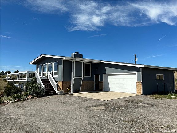 Discover a little piece of Heaven spanning 4.72 acres in Parker with no HOA and low Elbert County taxes in Douglas County School District! This updated bi-level home offers 4 bedrooms plus an office, two living areas, and a cozy wood-burning fireplace in the lower family room. The great room upstairs features a wall of large windows to take in the views of Pike's Peak as well as warm hardwood floors that were recently refreshed. This room opens to a wonderful kitchen featuring tile floors, stainless steel appliances (including the range, microwave oven and refrigerator), slab granite countertops, a breakfast bar, plus an eat-in dining area offering French doors with blind inserts leading to a large wrap-around deck with fresh paint. The home has brand new carpeting and some new interior paint as well. An attached 2-car garage and a 21' x 31' outbuilding with electricity, concrete floor, and water located just outside the building provide ample space for vehicles, hobbies and more! Zoned for horses, the property includes a horse shelter and allows one horse per half acre in Elbert County. Live the equestrian dream in this picturesque Colorado setting and enjoy the beautiful mountain view! The location can't be beat being just minutes from downtown Parker and Southlands area with easy access to E-470! SELLER'S VA LOAN IS ASSUMABLE TO ANOTHER VA LOAN! Call for more details.