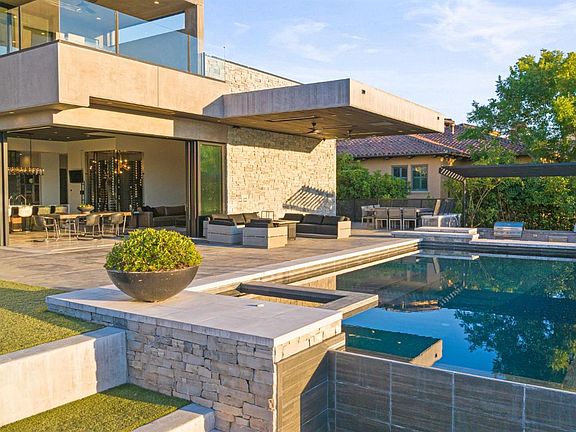 An architectural masterpiece of modern luxury, this Donald Joseph-designed estate commands attention from the moment you arrive. A striking 12-foot Weiland glass entry door opens to soaring spaces where walls of Andersen glass vanish, blending sleek interiors with panoramic views of Serrano Country Club's second fairway. Just moments from the Club itself, every detail reflects precision and drama-- from the chef's kitchen with Sub-Zero and Thermador appliances to the butler's prep kitchen with dishwasher and Dacor wine dispenser, and the showpiece temperature-controlled glass wine display. Each of the four bedrooms includes a private en suite, while the first-floor primary retreat offers cutting-edge tech, spa-inspired bath, and outdoor shower. Designed for seamless entertaining, the outdoor paradise features a vanishing-edge pool and spa, private pool half bath, theater system, outdoor kitchen with barbecue, pizza oven, kegerator, a pool swim up bar and fire pit. Upstairs is paired with a full bar featuring a second Dacor wine dispenser plus three wine fridges, and a private deck with a fire pit to enjoy the most incredible views & sunsets. With owned solar and breathtaking architecture, this is Serrano's most iconic modern estate.