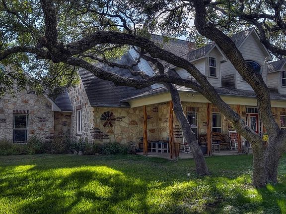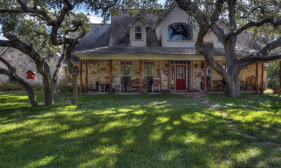 Experience the best of country living in this beautiful, spacious home set on a sprawling 7.49 acre estate. Built in 2003, this two-story home offers five bedrooms and three and a half bathrooms across 3,144 square feet of living space. Highlights inside include high ceilings, stained concrete floors, whole-home audio, a breakfast nook, formal dining room, a downstairs bedroom/office, two bedrooms with a bathroom upstairs, and another bedroom with ensuite bathroom above the garage. The large primary suite features French doors opening to the back patio and an ensuite bathroom with a walk-in closet, soaking tub, tiled shower, and dual vanities. There's plenty of storage with indoor closets, a partially finished attic, an attached two-car garage, a portable storage building, a detached one-car garage, and a workshop. The level, fenced property is ideal for horses or 4H/FFA agricultural projects. A circle drive, a garden, and an open field grace the front of the property, while numerous oak trees provide shade around the home. Utilities include water from two wells, underground electricity, and an RV hook-up. Select furnishings are included. No deed restrictions or HOA.