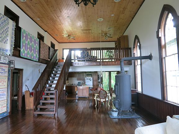 Unique historic home built in 1879. Home has been completely renovated from floor to ceiling. Originally a church, then a meeting hall and now a five (5) bedroom family home. Includes hardwood flooring throughout, antique six foot wood burning stove, nine foot gothic arch windows and pine ceilings .Large greatroom with solid wooden staircase. Invisible fence. Garage is detached with an unfinished 32' x 16' attic. Quiet setting. Would make a fantastic bed and breakfast. Fifteen minutes from Delaware.