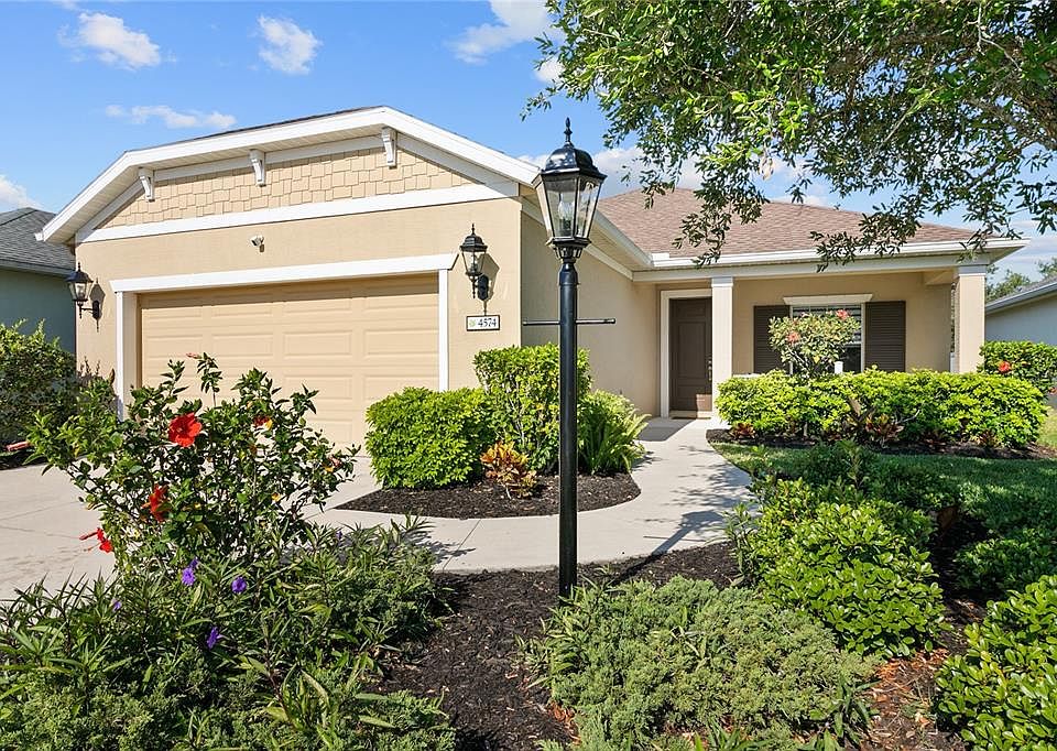 NEW UPDATES: All new interior paint in a gorgeous gray color in main living area, hallway and guest bath between secondary bedrooms. Also BRAND NEW granite in kitchen, new kitchen sink and faucet, see updated photos! This open-concept home features 3 Bedrooms PLUS A DEN with solid double doors that can also be used as an additional guest room, plus 2.5 Baths! As you approach this home, you’ll be greeted by the charming front porch with plenty of room for outdoor seating. Step inside the large foyer and notice the soaring ceilings. To the right is your spacious Den with wood floors and solid double doors for privacy, whether you use it as an office, playroom or an additional guest room. Next, you’ll step into the open Great Room, with tray ceilings and abundant light. The kitchen has beautiful granite countertops, warm cabinet colors, subway tile backsplash, a walk-in pantry and the oversized island has plenty of room to pull up your barstools and be able to entertain your guests, as well as pendant lighting. The stainless-steel appliances include a gas range with griddle, microwave, refrigerator, dishwasher. You also have a separate breakfast nook, a second pantry storage area and a half bath. On the left wing of the home towards the back, you’ll find the Primary Suite which is oversized and has 2 closets, and a spacious Primary Bathroom with walk-in shower and two separate vanities. Situated past the Great Room on the left wing of the home are two more bedrooms as well as a full bath and a very spacious laundry room with soaking sink! If you’re desiring a sunny outdoor area, you found the right home! This beautifully upgraded pavered lanai has been extended and screened in so you can enjoy the sunny outdoors or sit in the shade under the covered porch, and enjoy grilling on your BBQ where the gas is pre-plumbed for your convenience. Both neighbors on each side have fenced yards so it would be easy to adjoin them if you choose to have a fenced yard of your own! The GATED community of Woodbrook is truly located convenient to all the shopping and restaurants you could possibly need! Also easy proximity to the interstate for the commuters and quick access to Downtown Sarasota and beaches. Flood zone X so no flood insurance required! The community also offers a beautiful pool, spa, BBQ kitchen area with shaded seating plus a playground. No CDD fees is an added bonus! Schedule your showing today as this home is priced aggressively for a quick sale!