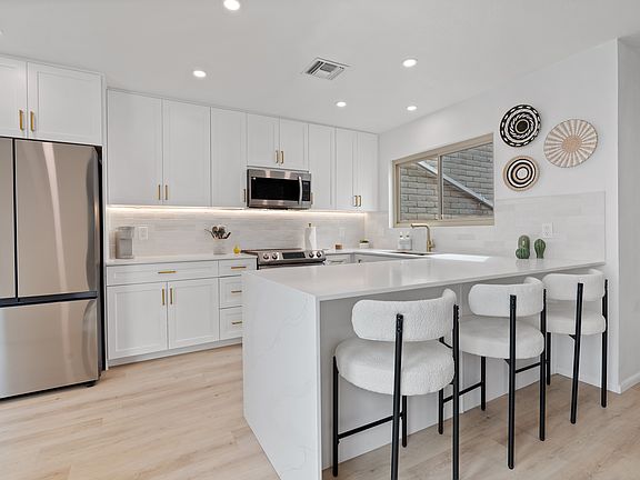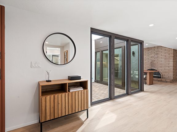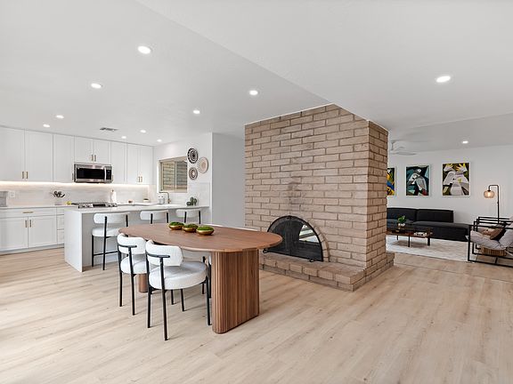 Immaculately renovated townhome blending modern elegance with timeless charm. Bright open layout features light wood flooring, designer lighting, and a stunning double-sided brick fireplace. Sleek kitchen showcases white shaker cabinets, quartz counters, gold hardware, and stainless appliances. Spacious living area with sliders to a private paver courtyard perfect for outdoor dining and entertaining. Primary suite offers patio access, exposed brick accent wall, and spa-inspired bath with dual vanities and a walk-in shower. Low-maintenance yard and unbeatable location. Two community pools, spa, fitness room, tennis, pickleball courts, basketball court, and close to popular hiking trails.