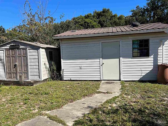Charming Fixer-Upper, Endless possibilities! Located in the heart of historic Bagdad — where small-town charm meets opportunity! Just one block from the public boat launch with fishing, a shaded picnic area, and beautiful waterfront views, this property is ideal for anyone who loves the outdoors or dreams of living near the water. This fenced-in corner lot features a home with great bones and tons of potential. Major updates have already been taken care of, including a 16-year-old metal roof, copper wiring, updated HVAC-estimated 2020 and a premium EcoSmart tankless water heater. The home is connected to city water and sewer. Outside, enjoy the practical and hobby-friendly spaces — a 10x10 storage shed, a 10x20 workshop with electric and water, including washer and dryer for added convenience. A 25x25 metal carport with a concrete foundation. The yard also features a mature pecan tree along the fence that flourishes with pecans each harvest season, adding a touch of Southern charm. With its corner lot visibility and proximity to the boat launch, there’s even potential for a small tackle shop or local hobby business (subject to city zoning approval). 'AS IS' BUT here’s a bonus for buyers — a renovation loan is available through a local lender, allowing the new owner to complete the renovations themselves and hire subcontractors directly, without the requirement of a general contractor. This flexible loan option gives buyers more control and can make transforming this home even more affordable and achievable. Whether you’re an investor, a first-time buyer, or a hands-on homeowner looking to bring new life to a historic property, this home offers a rare mix of character, location, and opportunity. Buyer and buyer’s agent to perform due diligence and verify all details of importance. Measurements taken from county records.