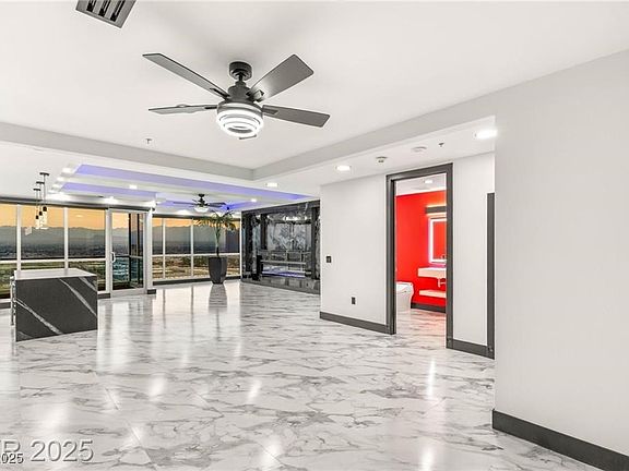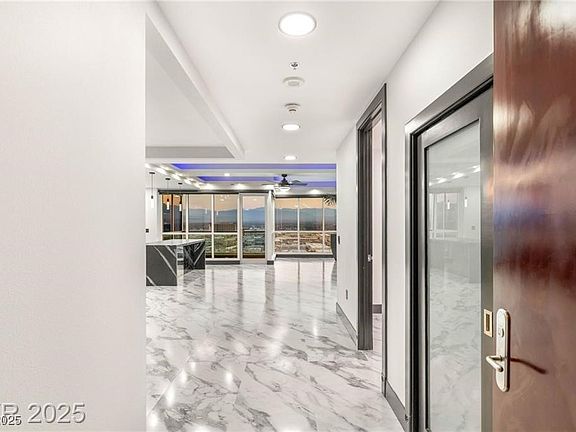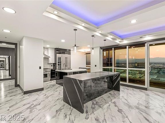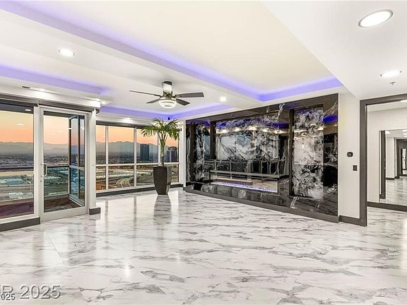 Welcome to an impeccably renovated residence at Panorama Towers, offering 2,324 sq. ft. of luxury with two separate primary suites—designed like a true “house in the sky.” Over $240,000 in custom upgrades include new vinyl plank flooring, fresh paint, baseboards, LED lighting, and dual walk-in closets. The chef’s kitchen is a showstopper with sleek European glossy cabinets, two oversized islands, and all-new Thermador appliances, including a wine fridge and dual beverage centers. Both bathrooms are fully remodeled with modern finishes, backlit mirrors, bidet toilets, and premium fixtures. Additional highlights: new tile and backsplashes, linear fireplaces, epoxy accent walls, solar-powered window coverings, epoxy balcony flooring, and all-new hardware. Every detail has been thoughtfully curated to deliver an elevated high-rise lifestyle in one of Las Vegas’ most iconic buildings. NO NEIGHBORS ON EITHER SIDE OF YOU.