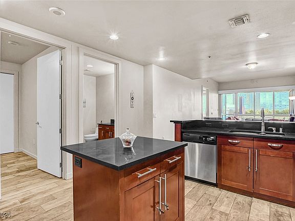 Experience high-rise living at its finest with dazzling views of the Las Vegas Strip. This highly desirable two-bedroom, two-bathroom floor plan has iconic Strip views from the primary suite, living room, and balcony. The kitchen features rich cherry-finish cabinetry, an island, stainless steel appliances, and breakfast bar—perfect for casual dining and entertaining guests. The living room has 9.2 surround-sound wiring, electric shades, and views of the glittering city lights. The spacious primary suite offers Strip views, a generous closet, motorized shades, an ensuite with dual vanities, walk-in shower, and relaxing soaking tub. The second bedroom is perfect for a weekend guest or stylish home office. Located in Las Vegas’s premier luxury high-rise, steps away from the world-famous Strip, headline entertainment, pro sports venues (NFL, NHL, and soon MLB), and a internationally celebrated dining scene. Own a piece of the Las Vegas skyline—schedule your showing today before it’s gone!