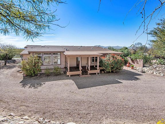 City and Mountain views!!! This impeccable 3bdr/2baths manufactured horse property is what you are looking for. 2048 Square feet, open bright floor plan with lots of windows, ceramic tile, wood floors, large front and rear decks, attached storage room with air conditioning, double carport and totally landscaped fenced lot with steel entry gate. Views include Catalina Mountains, city, sunset and entire Tucson valley from this high secluded lot. Must see to appreciate.Make sure you check out the virtual tour!