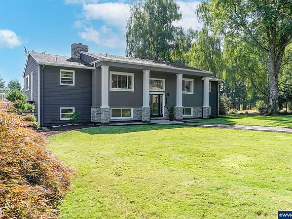 Absolutely Stunning Wine Country Estate on 1.80 Acres! Welcome to your dream home in the heart of wine country, just 10 minutes from downtown Salem. This immaculate 3,024 sqft estate offers the perfect blend of luxury, comfort, and functionality—situated on a beautifully landscaped 1.80-acre lot with incredible amenities throughout. The recently remodeled kitchen is a chef’s dream, featuring brand-new appliances (installed just 6 months ago), a convenient mini fridge, and stylish finishes. The bright and inviting primary suite offers direct access to the full-length back deck and includes a spacious walk-in closet, a luxurious double-head tile shower, and a soaking tub with custom tile surround. Downstairs, you’ll find a spacious living area ideal for entertaining, complete with a secured wine room and a newly updated wet bar—ready to be converted into a second kitchen for dual living potential. Three bedrooms are located on the lower level, including an oversized suite with a walk-in closet—perfect for a second primary. You’ll also find a charming updated bathroom and a well-equipped laundry room with a utility sink. For the hobbyist or business owner, the 40x45 insulated shop is an absolute showstopper—featuring 3 bays (including an RV bay with dedicated pad and plug-in), 400-amp service, electrical outlets every 6 feet, a tankless water heater, sink, and even a built-in winch. Plus, there’s an oversized detached 3-car garage for additional parking and storage. Enjoy unforgettable summer days lounging in the in-ground pool with a brand-new automatic cover. The ultimate outdoor living setup includes two firepits and a covered entertainment area with two gas burners and a BBQ—all on wheels for easy rearranging and cleanup. Not to mentioned the greenhouse and Koi pond. This one-of-a-kind estate truly has it all—space, style, and exceptional amenities. Don’t miss your chance to own this rare gem!