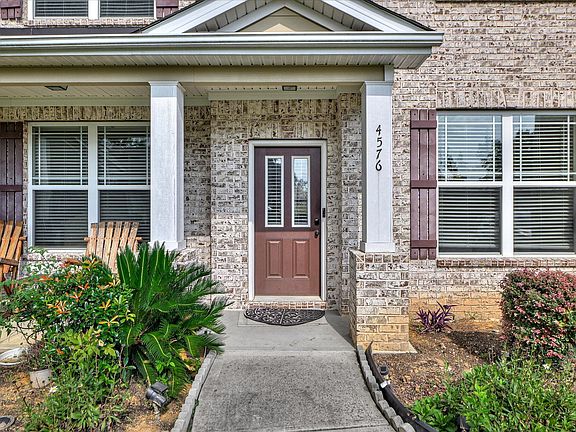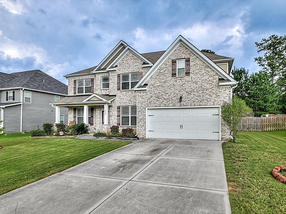 8,000 dollars Buyer's Incentive! Apply toward closing costs or an interest rate buy-down. This stunning brick-front home welcomes you with a charming covered rocking chair porch and an inviting entryway. Inside, a private study with French doors and a formal dining room set the stage for elegant living. The main level also offers a guest bedroom with a full bath, perfect for visitors. The chef's kitchen is the heart of the home, featuring a huge island with granite countertops, abundant cabinetry, a tile backsplash, double ovens, pantry space, and recessed lighting. Beautiful hardwoods flow throughout the foyer, kitchen and breakfast area, dining room, and hall, while tile floors enhance the owner's bath and main-level full bath. Upstairs, you'll find four spacious bedrooms and 3 full baths along with an open loft ideal for entertaining. The luxurious owner's suite boasts a sitting area, two large walk-in closets, and a glamorous bath with a tiled shower and garden soaking tub. Outdoors, enjoy the covered patio with a wood-burning fireplace, perfect for cozy evenings. The neighborhood features a community pool, sidewalks and a playground. Near shopping, dining, and Fort Gordon.