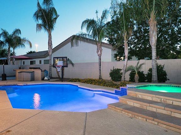 Beautiful TOLL BROTHERS BASEMENT home with tons of space for everyone to spread out! Many audio, video, & networking upgrades. Main level inclds: Formal Dining & Living rooms w/ fireplace, open Great room w/ gourmet eat-in kitchen & granite counter tops, private master bedroom. The 'east wing' opens to the courtyard & includes a single car garage, bonus game room, office/flex space, & 2 bedrooms & 2 baths, 1 of which has en-suite bath & separate entrance(great for multi-gen living). BASEMENT inclds: media room, wet bar,2 bedrooms, 2 baths,& ample storage. Backyard has heated salt water pool & spa, gas fire pit, built-in BBQ w/ gas stub, netted Basketball court & RV gate. Power Ranch Community has miles of walking trails, several parks & pools, acres of common area, community Clubhouse Barn
