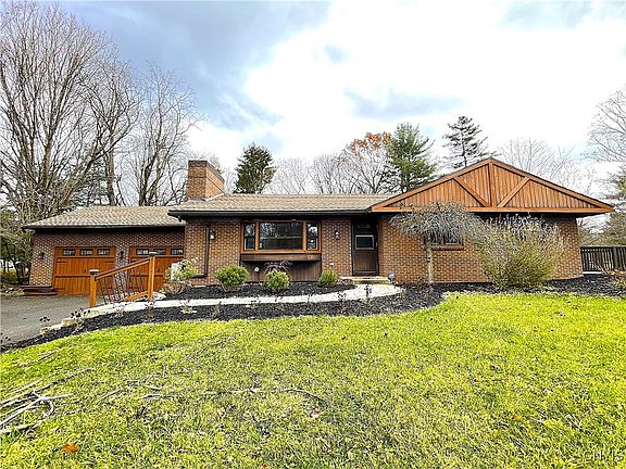 Nestled in the heart of Manlius neighborhoods, a rare gem awaits who's seeking the perfect blend of convenience and comfort. Welcome home to this classic brick ranch that redefines single-level living.This charming residence spans 1,766 sq. ft. of space includes the newer remodeled 616 sq. ft. master bedroom suite, complemented by an ADDITIONAL 630 sq. ft. in the partially finished lower level. A seamless, manageable open floor plan effortlessly guides you from the front entry into an inviting living room, where a warm wood-burning fireplace anchors the space. This flows into a modern gourmet kitchen, adjacent to a rustic chic bar area featuring its own fireplace and framed by floor-to-ceiling sliding doors, offering panoramic views of the expansive backyard for all seasons. The home boasts a total of four spacious bedrooms and two and a half bathrooms. The sizable master suite is a true sanctuary, complete with a cozy gas fireplace, a considerable master bath, and a private sitting area. Three additional bedrooms and a full bath are conveniently located on the first level. Partially finished basement with lofty Rec room area, half bath, and an additional bedroom/office with built in shelves. Outdoor living is elevated on the generous 0.71-acre lot, ensuring ample room for both grand entertaining and quiet retreat. .The newly finished landscape (2025) and a double-wide driveway lead to an impressive front yard, while the vast, flat backyard features a refinished deck and patio (2025), perfectly poised to accommodate large gatherings or serene personal enjoyment. The property has been fully improved with a NEW roof, A/C, interior paint (all 2025) and more, making it move-in ready. Located in the Fayetteville-Manlius School District, the home offers a serene neighborhood setting with immediate proximity to the natural splendor of Three Falls Woods, Green Lakes State Park, Pratts Falls Park, and the scenic Erie Canal trails. This must-see property delivers the best of Manlius living: a harmonious blend of a private, spacious lot, excellent schools, and easy access to local amenities. Experience character, comfort, a coveted lifestyle here daily, your next home.