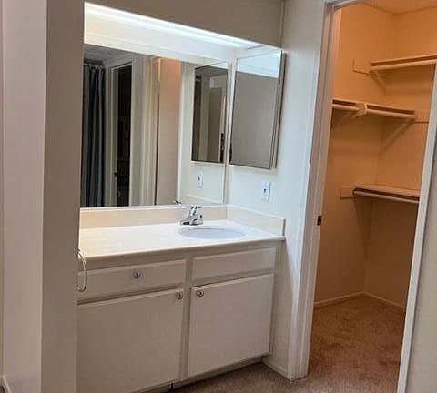 1 + 1 + A/C + Laundry + Refrigerator + Dishwasher + Microwave + Range $1900 + Deposit of $2400. Remodeled upper end unit located in the rear of complex. Charming move in ready. Vaulted ceilings in Living area. Dining area with ceiling fan. Bedroom with separate vanity, walk in closet and washer and dryer. Your very own balcony with views of the greenbelts. Huge Community pool and spa. Covered carport for parking. Near shopping and the freeway. Water and trash included. No pets and No smoking.