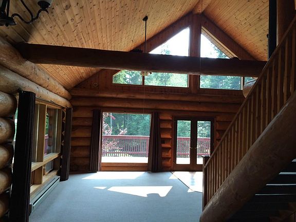 This unique PNW Log Home is on one acre with mature landscaping, garden space, flower beds and fruit trees. There is a large deck off kitchen and dining area. New kitchen remodeled in 2014, boasts a new downdraft stove, solid surface counter tops and a pantry. There are two master bedrooms, the upstairs master has it's own private deck, overlooking the gardens. There is a shop area under the home and there is a large storage shed.