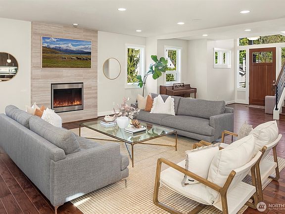 Experience luxurious living in the coveted Inverness Park neighborhood with this stunning 2016-built home. The exceptional chef’s kitchen boasts Thermador appliances, six-burner range, three ovens, abundant custom cabinetry, spacious island, and walk-in pantry. Upper level features four bedrooms, including lavish primary suite complete with spa-like bath, heated floors and walk-in closet. Beautifully landscaped outdoor space includes covered living area with gas fireplace and TV. Central air conditioning. Rare three-car garage w/ample storage space. Conveniently located, easy access to the Burke-Gilman Trail just down the street and 10-minute stroll to Matthew’s Beach. Short drive to UW, Children’s Hospital, Magnuson and Lake Washington.
