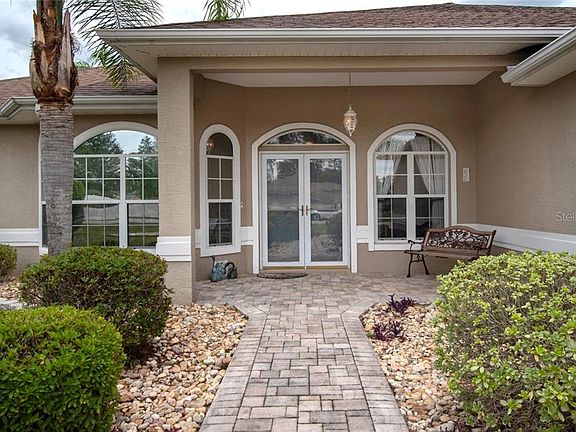 Beautiful Churchhill Model home 3/2 with Bonus room offering split floor plan in Ocala Waterway. This home features large great room, spacious kitchen with upgraded cabinets, breakfast bar, eat in kitchen with french doors to the large lanai. The huge master bedroom features a walk-in closet, and the master bath has marble bathroom countertop, marble garden tube DBL sins and shower.
