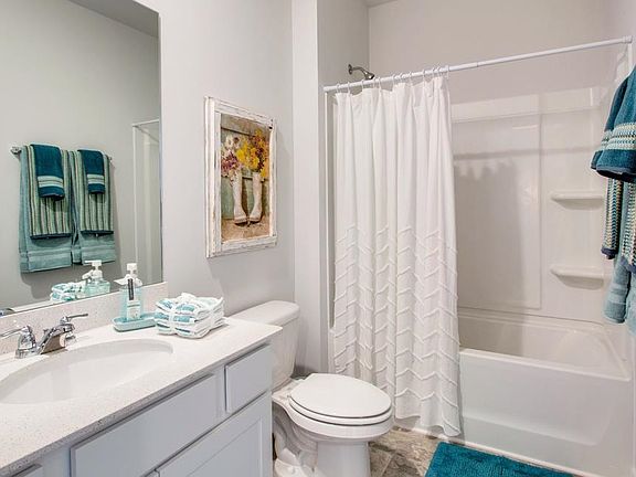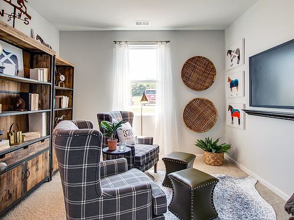 The appealing one-story home includes many contemporary features, and an open-concept design, enhancing the wonderful feel of this home. The kitchen includes a large island perfect for bar-style eating or entertaining, a walk-in pantry, and plenty of cabinets and counter space. The dining room and living room both overlook the covered porch, which is a great area for relaxing and dining al fresco. The large Bedroom One, located at the back of the home for privacy, can comfortably fit a king size bed, and includes an en suite bathroom with double vanity, big walk-in closet, and separate linen closet. Three other bedrooms share a second bathroom. The two-car garage connects to the front hallway where the laundry room and an extra storage closet are also located. Pictures, photographs, colors, features, and sizes are for illustration purposes only and will vary from the homes as built.