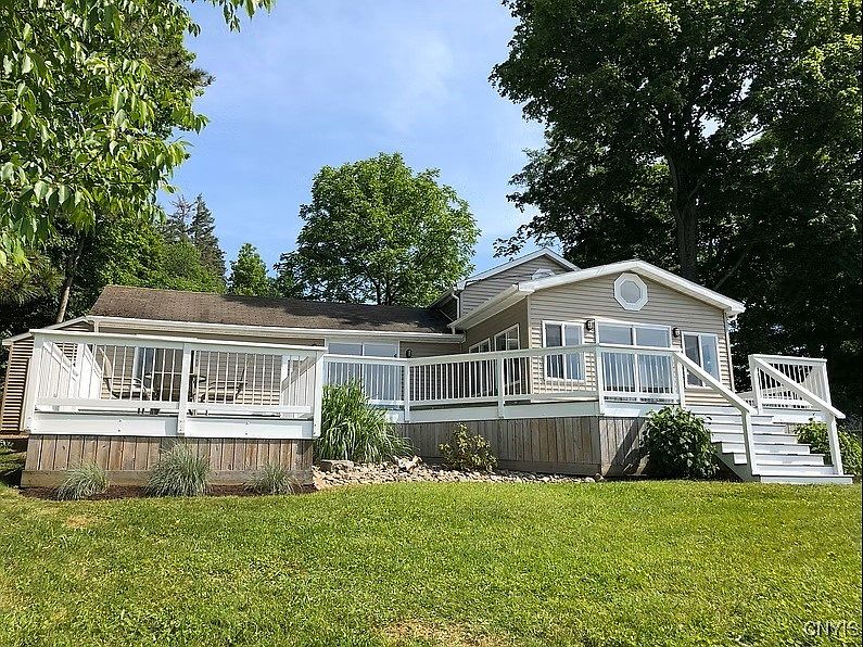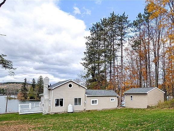 Lake Moraine Views from this Seasonal 2-bedroom Ranch with Large Yard! Imagine ending your day with breathtaking sunset views, perfectly positioned to overlook the tranquil waters of Lake Moraine. Beautifully updated throughout, this home offers a seamless blend of comfort and style. The kitchen is thoughtfully designed with an island and sink, making meal prep a pleasure, while the sliding glass door opens directly onto a large front deck—ideal for outdoor dining or simply soaking in the scenery. Step inside to find a welcoming living room complete with a cozy loft area and a gas fireplace, creating an inviting space for relaxing evenings. The front great room features surround windows, filling the interior with clean natural light and offering panoramic views of the lake beyond. With its pristine interior and open layout, every corner feels bright and airy. Outside, you’ll find a large shed with a convenient garage door in the backyard—perfect for storing all your lake equipment and lawn essentials.