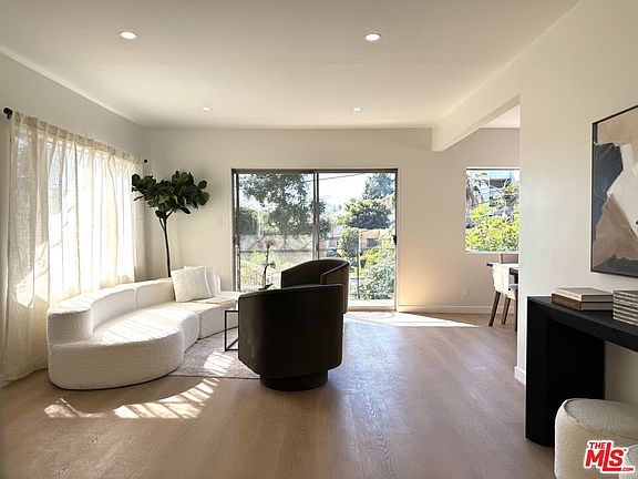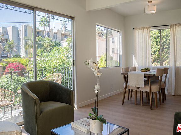Spacious and updated Mid-Century condo in the heart of Los Feliz! This is a truly unique offering - a top-floor, end-unit condo in a quiet 1950's building, which has been completely restored and updated top-to-bottom with all new systems and designer finishes. The Ambrose sits on a peaceful street, lined with mature palm trees, perfectly situated between Hillhurst and Vermont. Tucked away to create calm, privacy and a connection with nature, yet close to all of the amazing amenities that make this neighborhood special! Originally built in 1959, the complex has been lovingly kept by the close-knit association, and retains that sought-after Mid-Century charm. Within this intimate complex, #8 stands out as an extraordinary unit. Sited on the top level and at the back with only one shared wall, the condo feels both airy and private, perched up away from the street. A complete retrofit and redesign has just been completed, with no surface left untouched. Systems such as plumbing, electrical and drain lines have been replaced. Walls have been stripped to the studs and reinforced, with new high-rated insulation added. New flooring, drywall, paint and recessed lighting throughout give a comfortable and luxurious feel. A brand new, oversized kitchen is chef-ready with all new cabinetry, quartz counters, stainless appliances, custom lighting and ample storage. The kitchen opens to a dedicated dining room with huge windows and a sleek chandelier. The spacious living room has a flexible layout, space for a WFH setup, and sliding glass doors that open onto the private balcony with Observatory views. The center hall boasts ample storage, including space for an in-unit W/D combo. Off the hall, a full bath perfectly incorporates an original cast iron tub with new designer tile, vanity, lighting and fixtures. The large primary bedroom creates a perfect retreat with clerestory windows, walk-in closet, and a beautiful new en-suite bath with walk-in shower, frameless glass enclosure, and dramatic floor-to ceiling tile. Meanwhile, the second bedroom is perfect as a guest room, office or nursery, and also includes an oversized walk-in closet. Finally, the dedicated carport space also includes additional storage. Located mid-block on Ambrose Ave, the building's location gives an ideal blend of privacy and convenience. Close to Griffith Park, transit, freeways, as well as the countless cafes, shops and dining options in Los Feliz and the surrounding neighborhoods, the home is also convenient to studios and employment centers in nearby Hollywood. With a sensible floor plan, original charm, meticulous upgrades, and thoughtful finishes, this move-in ready condo strikes a perfect balance and sits ready for its next chapter!