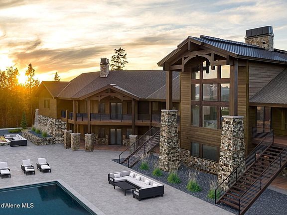 With panoramic views of Lake Coeur d'Alene and an uncompromising commitment to craftsmanship, Talis is set to become one of the most extraordinary homes in the Inland Northwest. Currently under construction and scheduled for completion in fall 2025, this 11,000-square-foot estate blends timeless mountain architecture with modern elegance on 3.77 private acres in the gated Syringa Heights community. Hand-hewn timber trusses, Montana Chief Cliff stone, and radiant in-floor heating define the interior. The primary suite occupies its own wing for complete privacy, while three guest suites and two additional bedrooms provide equally refined accommodations. Two gourmet kitchens—outfitted with Wolf and Sub-Zero appliances—are designed for effortless entertaining. The lower level features a 2,500+ bottle wine cellar with custom shelving, a wellness/workout suite with a Canadian hemlock infrared sauna, entertainment room, and an elevator serving all floors. Expansive decks frame the lake and mountain vistas, while a 20'×40' heated pool, and hydrotherapy spa combine leisure, luxury, and restorative comfort. A reserved boat slip at Hagadone Quick Launch Marina ensures easy lake access. Fully integrated smart home technology will allow intuitive control of lighting, climate, security, and entertainment from anywhere in the world. Whole-home concierge service further elevates the experience, providing seamless year-round or seasonal living with everything from maintenance coordination to personalized arrival preparations. Every element of Talis is being executed to the highest standards. An unparalleled opportunity for those seeking the finest in Coeur d'Alene living.