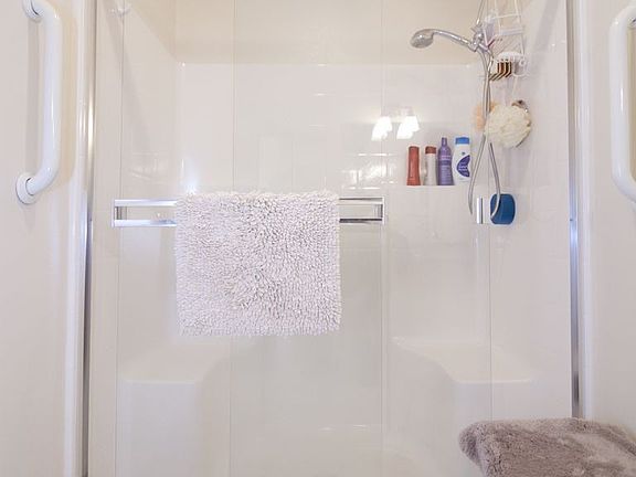 Totally upgraded first floor unit with all new kitchen, baths, washer/dryer, stove, blinds, wood trim. The designer light fixtures are beautiful! The kitchen cabinets are shaker white with indirect lighting above and below. New blinds at all windows, laminate floors for easy living. Gas log fireplace in living room. Walk in closet in Master Bedroom. Baths have new sinks, toilets and flooring. El Dorado is one of the most desirable condos in Bellingham.