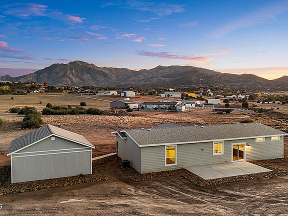 Discover the perfect blend of rugged high-country beauty and modern comfort. Set on 3 sprawling acres, this newly built home delivers unobstructed views of Granite Mountain in Prescott's highly desired Williamson Valley area. Wake up to brilliant sunrises over the peaks and unwind on evenings filled with starlit skies and cool breezes.Inside, the open-concept living space features expansive windows that showcase the mountain backdrop from every angle. A gourmet kitchen anchors the heart of the home with a large island, upgraded cabinetry, and modern stainless-steel appliances. The adjoining great room is warm and inviting with abundant natural light and space to entertain.The split floor plan includes 3 generously sized bedrooms and 2 full baths, including a sophisticated owner's suite complete with a spa-style bath, dual vanities, and a spacious walk-in closet.Complete with a 576 square foot detached garage, there's plenty more room to build your dream workshop, RV garage, or horse amenities. Enjoy the tranquility of rural living while still being minutes from downtown Prescott's shopping, dining, and historic charm.