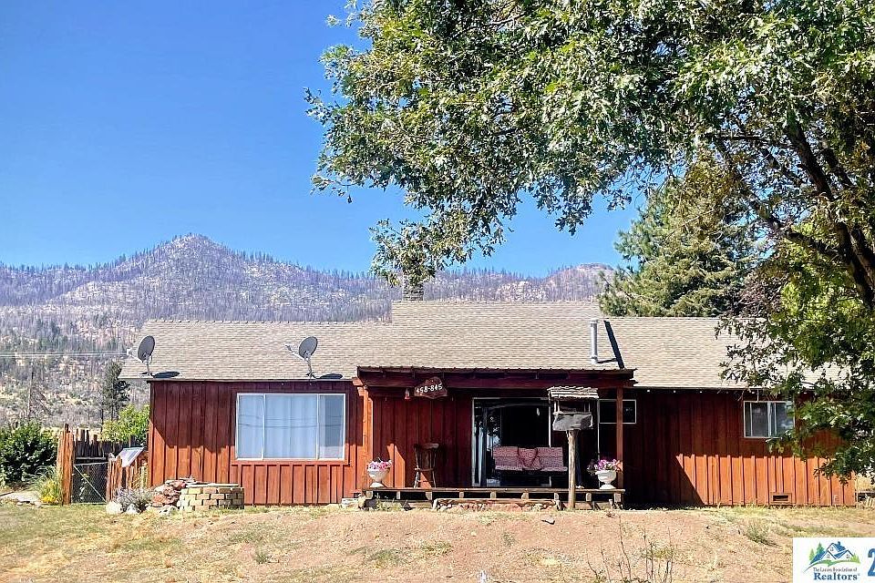 Rural, rustic and away from the maddening crowds where you can grab your coffee, tea or whatever, then sit down in your lving room or on the front porch to enjoy the perfect view of Honey Lake. This rustic 2 bedroom 1 bath home with beautiful wood beam ceilings and the rural setting will relax you immediately. When winter is here the rock fireplace with pass through wood storage keeps you warm but also keeps you inside. Even the breezeway to the Studio Apartment makes it great during the changing seasons as it is covered and protected. This home has a huge basement with so much potential for whatever you might want to use it for. As you walk through the breezeway to the Studio there is a small storage area that would work perfectly for a motorcycle, bike's, etc. In the Studio there is a kitchenette, bathroom with shower and sleeping area as well as washer/dryer hook ups. Next to the Studio is an oversized garage that is very deep and could handle multiple cars or be used as a work area which is it current usage. The gardeing work area has been retasked to a home for quail and finches who have access from the outside to the inside of the garden work area, this is so clever. Chickens are very happy out and about this property. Outside you will find a carport, three sided, for two cars, a wood shed and pump house. This area in back is fenced and cross fenced so bring your horse, goats or whatever animal might work for 4-H projects. These are very motivated sellers.