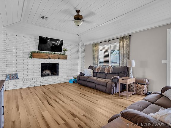 Nestled on 0.67 acres, this delightful 3-bedroom, 2-bath home offers the perfect blend of comfort and style. Recently updated, it boasts incredible curb appeal with a brand-new roof installed in September 2024. The kitchen shines with white upper cabinets, gray lower cabinets, modern white subway tile backsplash, abundant storage, and sleek stainless steel appliances. Relax by the cozy wood-burning fireplace in the living room—ideal for those chilly Oklahoma evenings. Plus, a storm cellar provides added peace of mind for unpredictable weather. This home also features a spacious 2-car garage, providing plenty of room for your vehicles and storage needs.