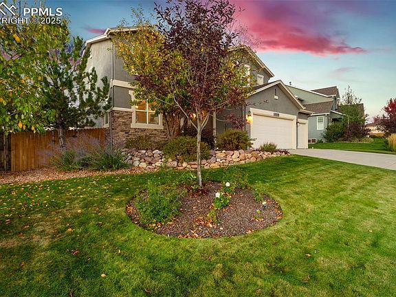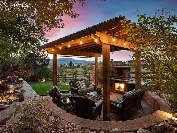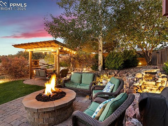Welcome Home to this one-owner, move-in-ready, immaculate home in Struthers Ranch! If you love outdoor living with Views, Views, Views...this is your place! The backyard will let you experience all Colorado seasons to the fullest! Featuring a gas or wood burning fireplace, pergola, gas fire pit, water feature, mutiple level stone patio's wood deck, raised bed garden areas, fenced in side yard with a shed, lots of grass, three apple trees, one cherry tree, lilac bushes, among other mature landscape, and views into the open space where you can watch the sunsets, or the animals walking by! A Colorado Dream!! Upon entering the home, you will be greeted by hardwood floors, a formal dining area, and a spacious kitchen featuring upgraded cabinets, stainless steel appliances, an eat-in area, and an island with barstools that seamlessly connect to the living room, complete with a gas fireplace perfect for cozy nights. Double French doors will lead to a private office, rounding out the main level. The primary bedroom is located upstairs with a gorgeously remodeled spa-like 5-piece bath. An oversized shower with a rainhead, plus two additional shower heads, a soaking tub, double vanities, a make-up area, and a walk-in closet. There are three additional bedrooms upstairs with a remodeled full bath featuring two sinks. A laundry room, complete with a sink, rounds out this level. The garden-level basement features a large family room and a pool table, which is included with the home. There are two more bedrooms, one is very large and can double as a secondary office. There is also an additional full bath and storage area. Located in Northgate, this home is close to USAFA and offers a quick drive to Colorado Springs or Denver. You will not want to miss this gem! Take a look today!