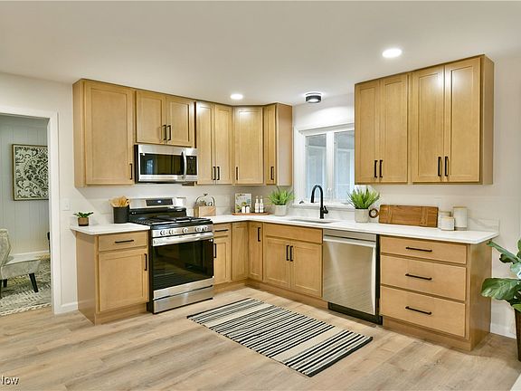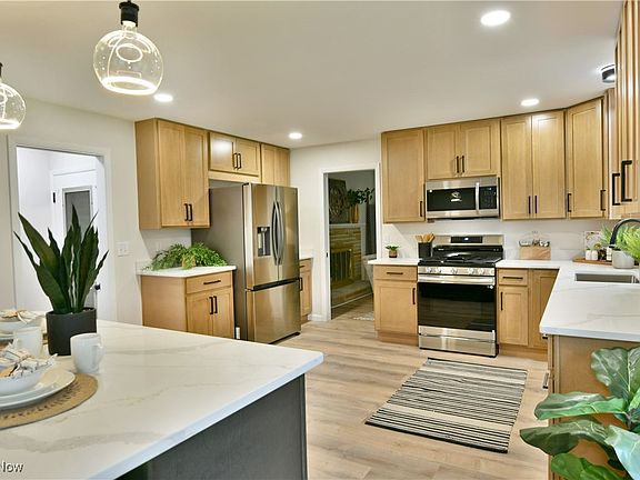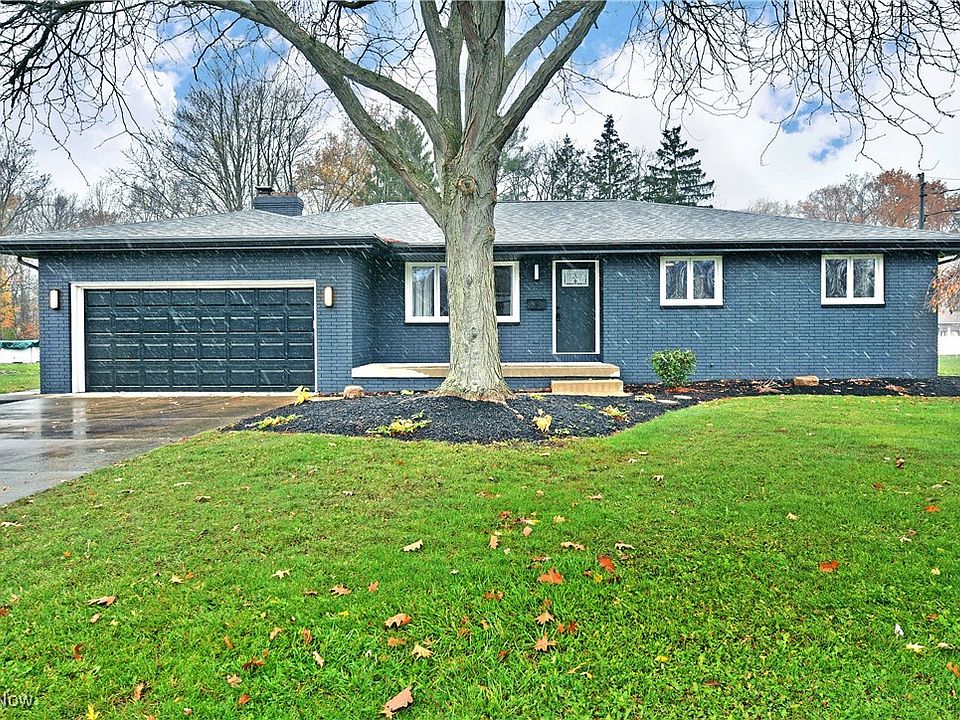 Have you been naughty or nice this year? Well, even if you weren’t, forget Santa and treat yourself to this gorgeous Niles ranch and toss the coal into the fireplace! Masterfully remodeled from the inside out, this move-in-ready ranch is going to be at the top of everyone’s list. Striking from any angle, this home quickly stands out from its peers with its bold, blue painted brickwork and complimenting entry doors. Make your way across the landscaped sidewalk and inside to find a welcoming living room, awash in natural light from the large picture window. Naturally colored hardwood styled flooring runs throughout as the sculpted crownwork presides overhead. Just past the main hall, the expansive combined kitchen and dining rooms wow with sleek, modern upgrades that combine plenty of warmth mixed in with polished stone countertops and stainless appliances. Recessed lighting shines from above, adding to the luster. A prominent center island offers instant gravitation to its additional seating and serving space. Nearby, a cozy family room showcases its lovely fireplace and opposing sunroom access. Traveling down the main hallway, the first stop is a gorgeous full bath with its dual vanity and marbled shower surround. The trio of bedrooms include the lavish master suite with its own brightly lit bath and floor entry shower. Down below, a full basement includes laundry and utility provisions, plenty of finished rec space and an additional full bath.
