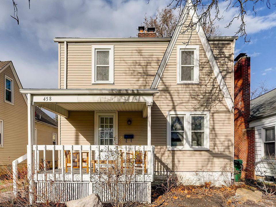 CHARMING & TUCKED AWAY on a quiet part of the street! SUPER CUTE. Original hardwood floors & glass knobs add character & charm. Newer vinyl siding w insulation & energy efficient replacement windows. Kitchen is updated w maple cabinet & stone backsplash w new stainless steel appliances inc a double oven. Hard to find half bath & flex room off the kitchen on 1st floor makes great office/playroom. Off dining room are french doors that lead out to a Trex maintenance free deck & fenced in backyard w new gates. Upstairs features three well sized bedrooms & lg full bath. Located in the Clinton Elementary School District. FANTASTIC WALKABLE location to many Clintonville attractions such as The Crest, Savor Growl, Studio 35 & walking trails into Glen Echo Park.