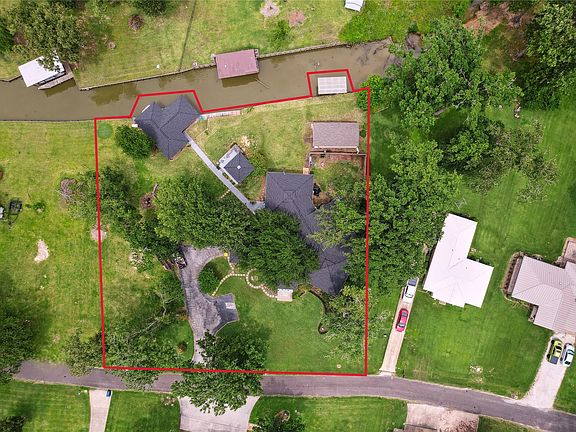 Gorgeous waterfront property located in sought-after Resort Country neighborhood. This exquisite home sits on about 1/2 acre boasting approximately 185' of waterfront, nestled among majestic hardwood trees. Featuring a split floorplan with 3 beds, 2.5 baths, high ceilings, and a dream kitchen. New roof installed in 2023; a home warranty in place. Enjoy the protected courtyard deck, partially fenced back yard with a back deck, she shed, large storage building and two boathouses - one with two slips and lifts, plus a storage area; the second boathouse includes one slip. Don't miss out on touring this stunning custom home!