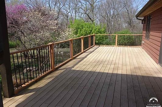 Views, Privacy. 11.6 Acres. Close to Clinton Lake, pond and barns. Great custom built ranch house. Timber, has it all. Nice decks surround house. Water feature, orchard, hot tub in master suite. Incredible