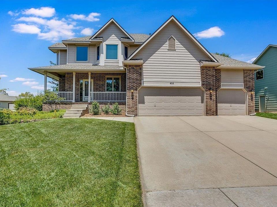This is a one owner, gorgeous 2 story home situated on a beautiful corner lot. Pride of ownership is obvious with the perfectly manicured lawn, established trees and stunning flower beds. Walk in and appreciate the professionally installed luxury vinyl floors throughout the main floor. The two-way fireplace is inviting whether watching TV or enjoying mealtime. The chef of the house will appreciate the functional kitchen with plenty of space including the wall of pantry shelving. This home is perfect for entertaining with the formal dining room (or convert it to a home office), eating area in the kitchen and over-flow to the elevated, shaded deck. The main floor is completed with a half bath with laundry room. This updated primary suite offers a large bedroom and two closets. The remodeled bath has dual sinks, linen closet, custom tiled shower, backsplash and HEATED floor. Plenty of space on the 2nd floor with three more bedrooms and a traditional full bath. The basement has an abundance of light coming through the view-out windows and lots of versatility with the L-shaped family room. Don’t miss the extra storage the seller refers to as his “man cave”. So many extras in this home including: 2 year old HVAC, roof is high impact shingles and only 3 years old, newer windows, all kitchen appliances are staying with home including the washer and dryer, plenty of storage throughout, irrigation well, sprinkler system and so much more. Home is in popular Goddard School District and a very desirable neighborhood. Don’t wait…this one won’t stay on the market long.