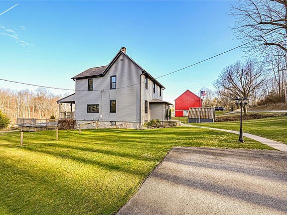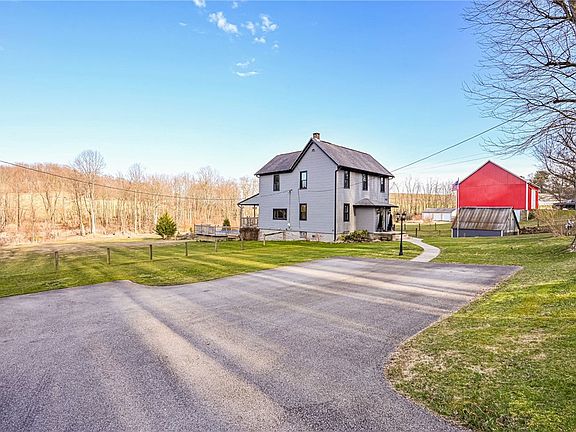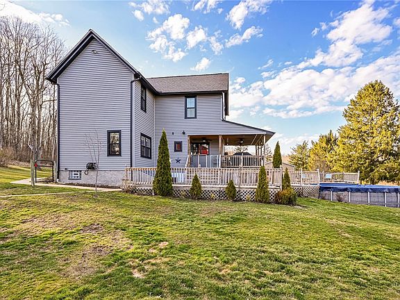 Perfect location awaits in this 2 story farmhouse, only minutes to both Greensburg and Latrobe. Over an acre, large fenced area for both kids and pets. Fantastic pond with water spout. Serenity is yours from the large rear deck which overlooks the pool, pond, and backdrop of tree line. Wildlife is common and abundant. Main floor boasts a user friendly, ample sized kitchen, inviting dining room, and relaxing living room. Upstairs are 2 large bedrooms, primary has direct access to full bath with plenty of room to add a soaking tub!! The third bedroom is currently being used as an in home office which looks out over the scenic rear yard. HOME HAS BEEN CONTINUALLY UPDATED, including new siding, windows, housewrap, hot water tank (2 yrs), powder room etc.