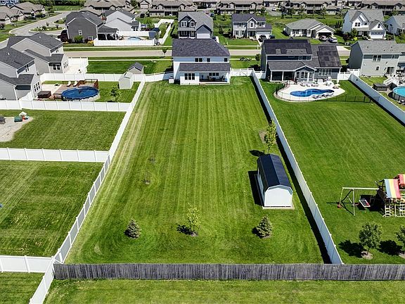 Discover refined suburban living at 4580 Carlyes Ct in Hamburg—an executive-style 5-bedroom, 3.5-bath homes built by Marrano set on a peaceful cul-de-sac. Designed with a discerning eye for both form and function, this home offers over 2400 sq ft of above-grade living space and a fully finished lower level that adapts to your lifestyle. Step inside to a sunlit open-concept layout where every detail has been thoughtfully chosen. The gourmet kitchen is a standout centerpiece with granite countertops, an oversized island, stainless steel appliances, custom herringbone tile backsplash, and elegant cabinetry. Just steps away, a spacious living room features a cozy gas fireplace and large windows. A formal dining space offers designer lighting and views to the backyard, while a private office with French doors provides a quiet place for work or study. The sunroom, framed by glass and infused with light, offers year-round tranquility. Upstairs, the primary suite feels like a private retreat with a spa-style ensuite showcasing a frameless glass shower, dual vanities, and heated tile flooring. Three additional bedrooms and a bathroom, also with heated floors, complete the upper level along with a convenient laundry area. The fully finished basement expands your living space with a large rec room, fitness room/ guest bedroom with egress window, and full bath. There’s even a charming playhouse nook and ample storage throughout. Outdoors, the home continues to impress with a fully fenced backyard, a covered patio ideal for dining or lounging, and a large utility shed with a metal roof. The epoxy-coated 2.5-car garage delivers a polished, low-maintenance space that’s perfect for car enthusiasts or added storage. Peace of mind with a whole-house backup natural gas generator and a tankless hot water tank. This home blends upscale finishes with practical design—perfect for those seeking comfort, space, and modern convenience.