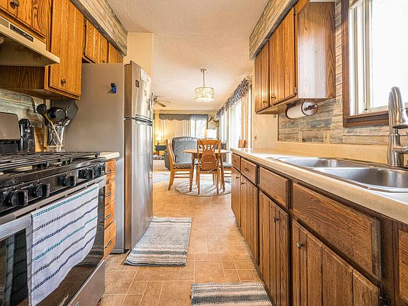 Private waterfront yardScreened porchExpansive wraparound deckWaterfront retreatCozy wood-burning fireplaceLarge windowsGalley-style kitchen