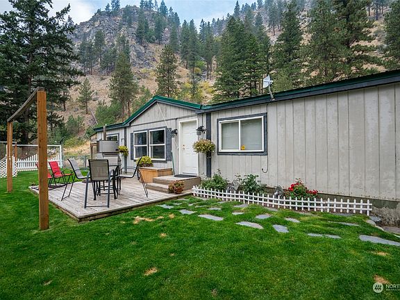 10 mins from Lake Chelan State Park, and 20 mins from downtown Chelan, sits this nearly 5 acre homesite. The privacy of your trees and the hills behind make for a serene setting. Wilderness activities right from your property all the way to the high country. This three bedroom two bath manufactured home has a new roof, gorgeous lawn with waterfall, new heat pump, detached garage and room for all of your gear.