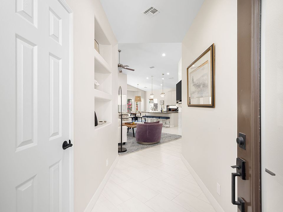 Gourmet kitchenOpen concept homeLush greensNew tile floorsHigh ceilingsQuartz countertopsOutdoor shower