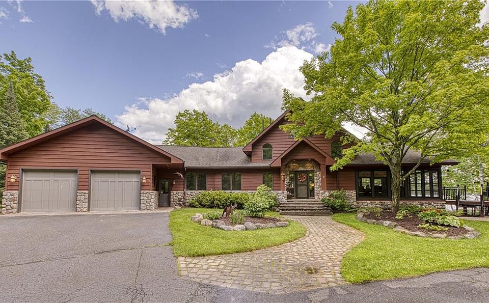 Nestled on 2.85 acres w/ 433 ft. of frontage, this property offers stunning views and level elevation leading to a swimmable beach. This 4,784 sq.ft. home boasts 4 bdrms and 4 1/2 baths. Step inside to a bright interior designed for relaxation and entertainment. The chef's kitchen features an abundance of space and brand new appliances. A massive screen porch is perfect for unwinding and enjoying the views with friends and family. Below the house, a boat house makes water activities convenient. The property includes a 1,500 sq.ft. bunkhouse for guests, a home office, or recreation. With an attached 2-car garage and detached 6-car garage, parking and storage are ample. Don't miss this exceptional opportunity. Schedule a viewing today to experience the beauty firsthand.