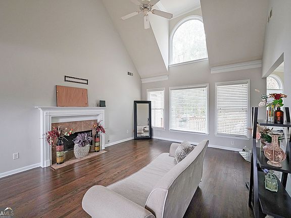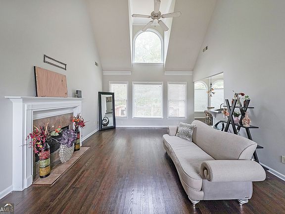 Cozy fireplaceHigh ceilingsGleaming hardwood floorsNatural lightingOpen airy layoutSecond kitchenDual sinks