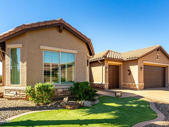 Solar owned, Pool & Fully furnished Integra-block home nestled on a premium corner lot. This beautiful home offers 2 beds + den, 2.5 baths, 2.5-car & golf cart garage, great curb appeal, and a lovely mature landscape w/artificial turf. The interior exudes elegance with plantation shutters, tall ceilings, layered crown molding, tons of natural light, a two-tone palette, and tasteful flooring - tile & carpet. Excellent open floor plan with a spacious great room and a formal dining room. The impressive kitchen boasts SS appliances, granite counters, tile backsplash, a walk-in pantry, ample wood cabinetry, and an island w/breakfast bar. The versatile den is ideal for an office. Each bedroom has a bay window, a walk-in closet, and an ensuite for added comfort. This is a must see!!! The storage & utility rooms are features that can't be left unsaid. But the true highlight is the backyard oasis! With a covered patio & sparkling pool, this space promises year-round enjoyment. PLUS! The SOLAR PANELS are added perks, helping you save on monthly energy costs. Experience the resort-style Community amenities with an 18-hole golf course, clubhouse dining, creative arts studios, and a sports complex featuring pools, pickleball, tennis, & fitness facilities. Residents also enjoy numerous clubs, walking paths, and a vibrant active adult social lifestyle. Don't miss this opportunity!