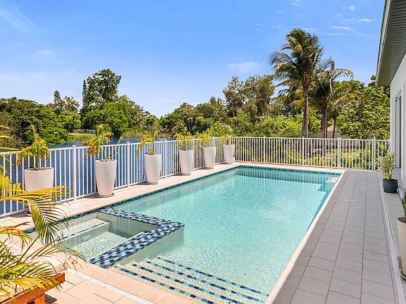 Enjoy the ultimate in luxury coastal living with this new, never-lived-in single-family pool home offering a rare combination of modern design, serene lake views, and a prime central Naples location with no HOA fees. Sitting at a very high elevation of 14.8 feet, this property provides peace of mind and added security. Just minutes from world-renowned beaches, shopping, dining, and top attractions, this stunning residence was custom-built in 2025 by Kaye Lifestyle Homes and professionally furnished, with furnishings negotiable. Designed for full-time living and high-end investment potential, this open-concept four-bedroom, three-bath home features a flat tile roof, soaring 12-foot tray ceilings, wide-plank hardwood floors, and hurricane-impact glass windows and doors throughout. The great room impresses with custom wall detailing and glass sliders opening to tranquil lake views. The gourmet kitchen offers white soft-close cabinetry, quartz countertops, a tile backsplash, pendant lighting, and a large island with bar seating. A spacious walk-in pantry and new stainless steel appliances including range, refrigerator and freezer, microwave and dishwasher complete the space. The adjacent dining area overlooks the water and provides direct lanai access. Step outside to a private, resort-style lanai featuring covered outdoor living with two modern ceiling fans and a custom outdoor kitchen complete with a built-in stainless steel barbecue, mini refrigerator and sink. The open heated pool and spa, built by Summit Pools, are surrounded by a fully fenced brick paver deck with unobstructed lake views, allowing you to enjoy stargazing nights without a cage. A dedicated pool bath provides added convenience for outdoor living. The luxurious owner's suite offers peaceful lake and pool views, a 3D textured accent wall, two walk-in closets with built-ins, and a spa-inspired bath with dual vanities, quartz counters, soaking tub, and a walk-in shower with textured tile, rain head, niches and private windows. One guest bedroom has its own en-suite bath with a walk-in shower that also functions as a pool bath, while the remaining guest bedroom is served by a full bath with a custom tile shower and tub combination. The spacious layout includes a versatile fourth bedroom that can also serve as a den, office, or study, complete with a closet, modern light fixture and double door entry. Additional upgrades include white plantation shutters throughout, custom trim and baseboards, washer and dryer with utility sink, epoxy garage flooring, Ring doorbell, Arlo camera system, and pre-wiring for a generator. Seller has transferable flood insurance, and a 2-10 Home Buyers Warranty coverage is included. In the desirable Twin Lakes neighborhood, this property offers unbeatable convenience to everything, all with no HOA restrictions. Whether you are seeking a luxurious primary residence or a premium investment, this lakefront retreat checks every box.
