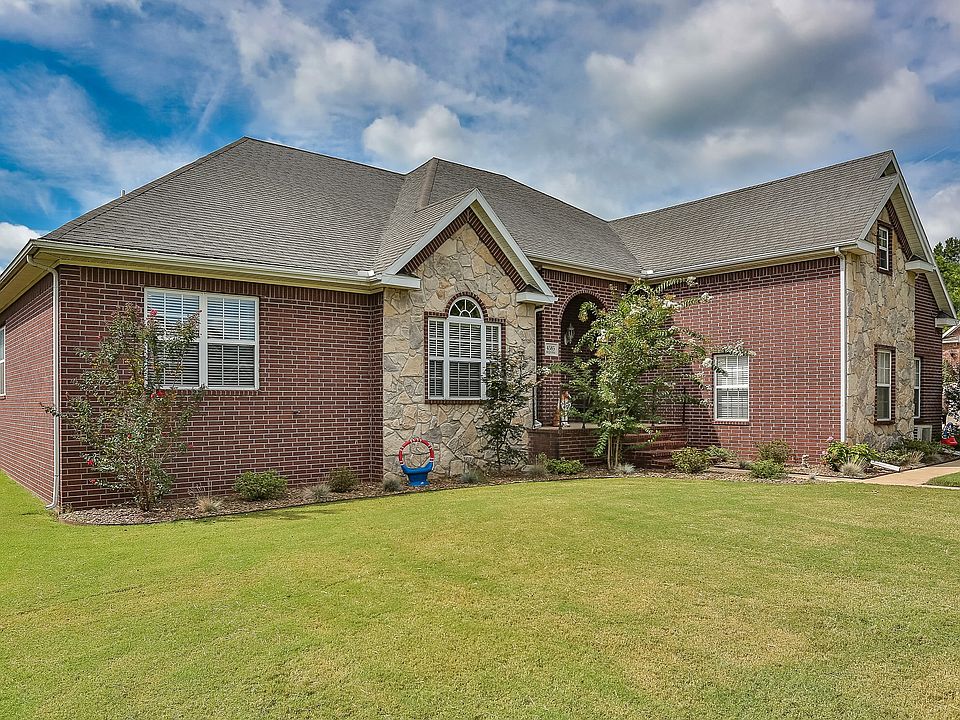 Nice brick home. Corner lot. Pinewoods Subdivision. Beautiful tall pine trees; also mature fall trees. Very nice neighborhood convenient to I-49, schools, restaurants, medical, shopping. This house is a short walking distance to the neighborhood in-ground swimming pool, basketball court, children's play area, catch and release fishing pond. House is spacious & grand with 14' ceiling in living-room with gas-log fireplace. The 2nd gas-log fireplace is in the master suite (master suite has bedroom, an office/den area with French doors, another space for exercise/reading/nursey, etc., his/her walk-in closets, his/her vanities, large jetted tub, walk-in shower). Very nice floorplan. The home has a formal dining room and also a breakfast area; both dining areas are open to the kitchen and is a great space for entertaining. The bonus room & bath with shower are upstairs; all other rooms are on the main level of the home. Pool table conveys. Fenced back yard. Storage Building. Partially covered patio. Garage 480 sq.ft.