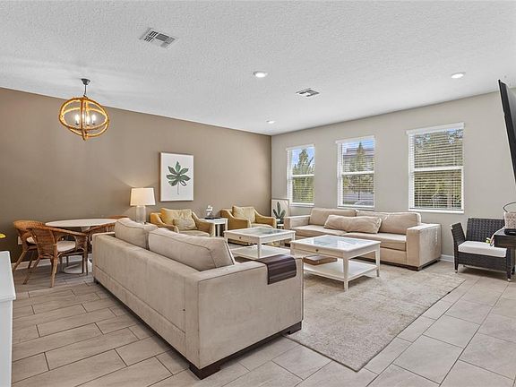 Nestled in the highly sought-after, gated resort community of Storey Lake, 4585 Target Blvd is an exceptional 6 Bed/ 6 Bath single-family home that offers the perfect blend of luxurious resort-style living and prime location. Built in 2019, this CORNER house is an ideal choice for a vacation home or a promising investment opportunity, with features that cater to both relaxation and entertainment. This FULLY FURNISHED AND TURN KEY READY house features spacious, open-concept floor plan with a beautiful kitchen that includes stainless steel appliances, elegant stone countertops, beautiful custom cabinetry, and a tile backsplash. The residence boasts two luxurious master suites, with one conveniently located on the main floor. Spacious Flex room downstair and the loft upstair can be used for game/theater room. Step outside to a private, screened-in deck with a sparkling pool and spill-over spa. The outdoor area features an enormous covered patio and offers serene conservation views, perfect for dining al fresco and enjoying the Florida sun. Storey Lake resort community includes a world of art amenities, including a luxurious clubhouse with a Tiki Bar/Grille, a lazy river, resort-style pool, water park with a double slide and splash pad, and a separate quiet pool. It also has sport field with basketball and volleyball courts, miniature golf course and fitness center. This community is in close proximity to Disney themes parks, shopping centers, restaurants and entertainments. Schedule a private tour today and make this beautiful home your new vacation get away or investment property... Matterport 3D Tour is available on Zillow and MLS for virtual tour and provides accurate room dimensions.