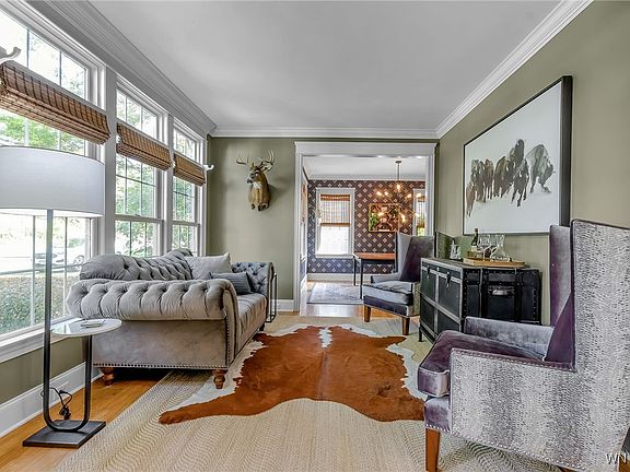 Welcome to 4586 Freeman Road – a Thomas Johnson–built residence where craftsmanship, comfort, and character converge. Set in the desirable Highland area of Orchard Park, this thoughtfully designed home blends timeless architecture with modern updates and an effortless layout ideal for single-level living. The first-floor primary suite with private en suite bath offers everyday ease, while the open floor plan connects the living, dining, and kitchen areas for seamless entertaining and comfort. The renovated kitchen features elegant quartz countertops, modern cabinetry, and high-end finishes, complemented by updated baths and designer carpet that elevate every space. Enjoy peace of mind with a new roof, tankless water heater, and Level 2 EV charger. Custom window treatments add a tailored touch, and the outdoor shed provides extra storage for tools and toys alike. Featured in an upcoming Hallmark movie, this exceptional home radiates warmth, storybook charm, and modern livability—just minutes from the Village, schools, and local amenities. We'll see you all the way home to 4586 Freeman Road.