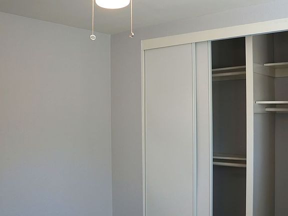 The bedroom comfortably fits a queen size bed and comes with a modern ceiling fan. The closet offers built in organizers for added space and storage. The attention to detail in this apartment home is evident in all aspects of this apartment home!